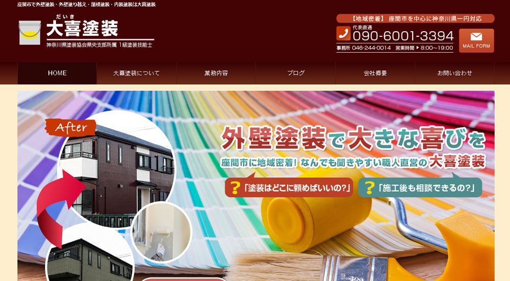 座間市の大喜塗装は塗装技術の高い施工で評価の高い会社です。