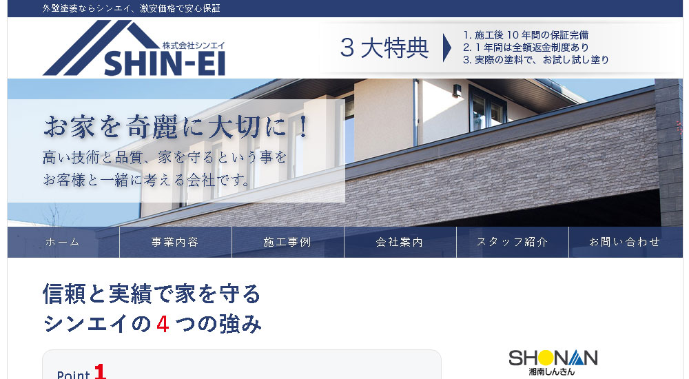 地域の気候に詳しい塗装の専門家である『シンエイ』は顧客満足度が常に高い信頼のおける塗装業者です。